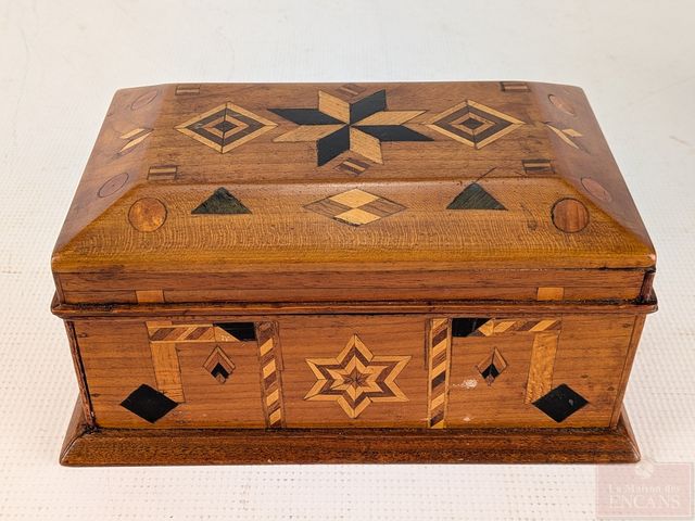 Lot # 69 - Coffre en bois marqueté mesurant 9 pouces de largeur