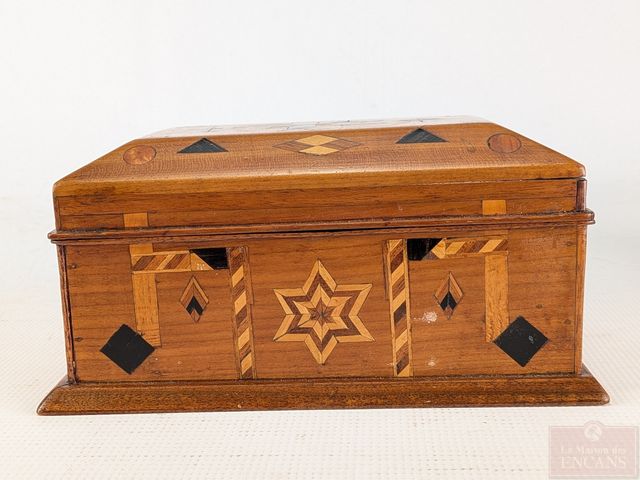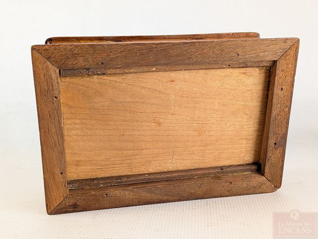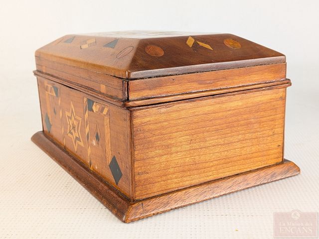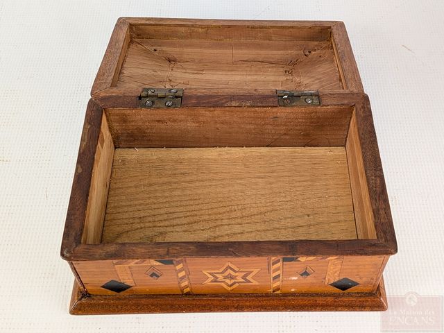 Coffre en bois marqueté mesurant 9 pouces de largeur