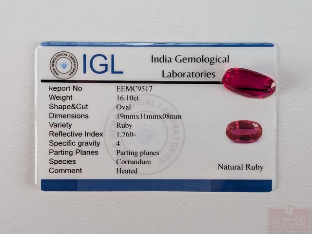 Rubis de laboratoire de 16.10 carats, mesurant 19x11 millimètres