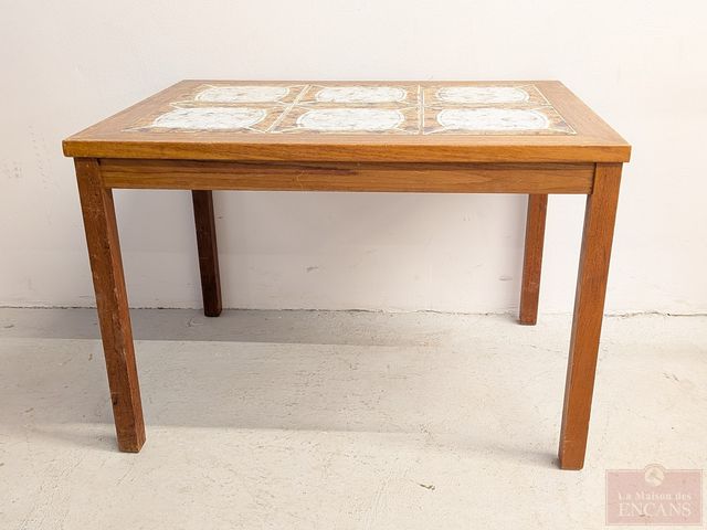 Table mid-century en bois à dessus de céramique, mesurant 19x20x28 pouces