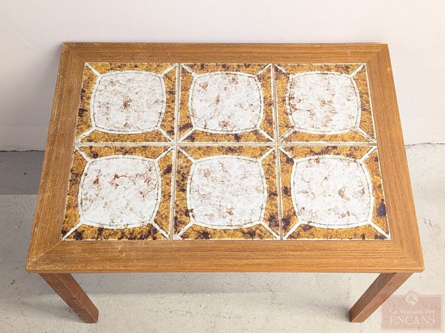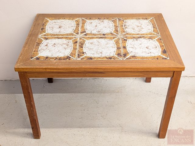 Lot # 2 - Table mid-century en bois à dessus de céramique, mesurant 19x20x28 pouces