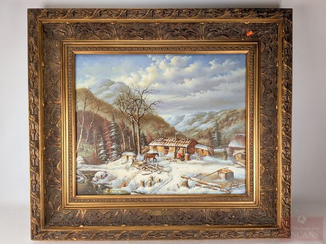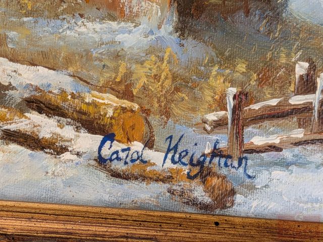 Carol KEIGHAN- Huile sur toile signée, mesurant 20x24 pouces et titrée 'The First Snow'