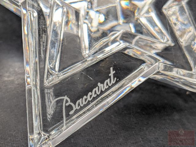 Lot # 18 - Deux centres de table en cristal, dont un Baccarat représentant une étoile et un de la verrerie française Cofrac, représentant un rhinocéros et mesurant 7 pouces