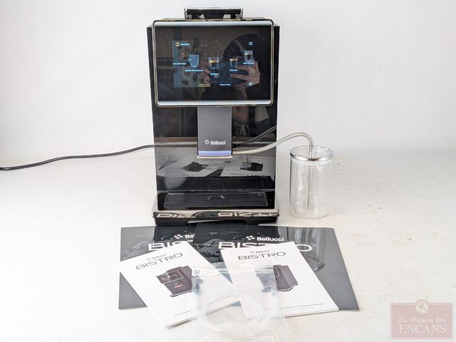 Lot # 20 - Machine à café automatique Bellucci Bistro avec ses accessoires, mesurant 16 pouces de hauteur, payée plus de 2 500 dollars il y a deux mois, comme neuve et fonctionnelle