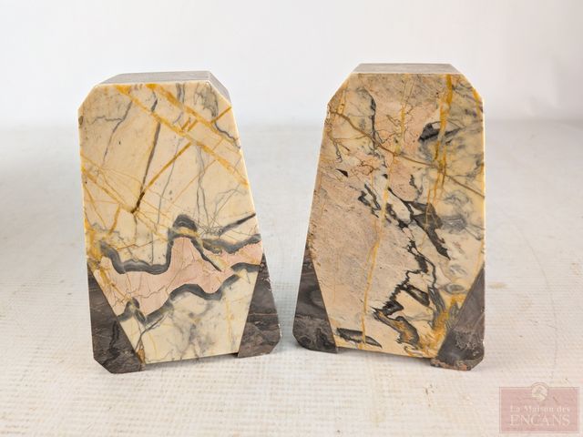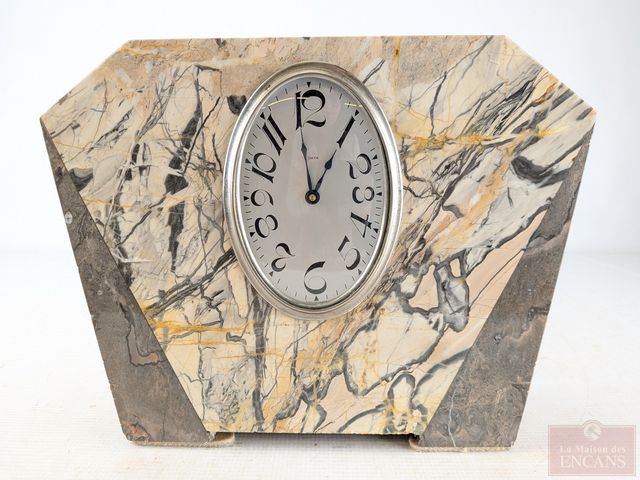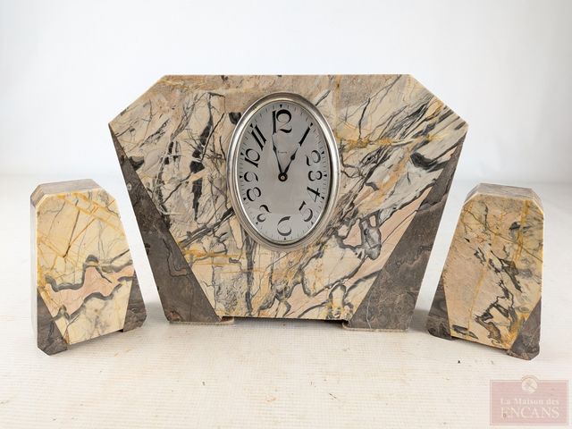 Lot # 6 - Horloge huit-jours art-déco en pierre avec ses appuis-livres assortis, faits en France, datant des années 1930 et mesurant 12 pouces de largeur, fonctionnelle