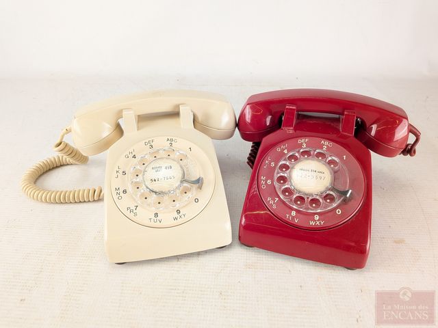 Deux téléphones à roulettes vintages Northern Telecom, mesurant 8 pouces de largeur chacun
