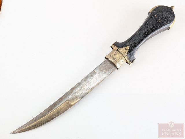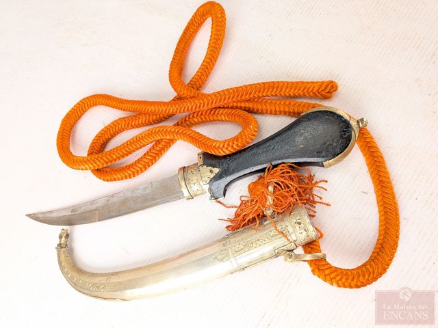 Couteau traditionnel jambiya avec son fourreau en métal, mesurant 15 pouces de longueur au total