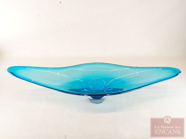 Lot # 133 - Énorme centre de table en verre bleuté - mesurant 35 pouces de largeur SOLD