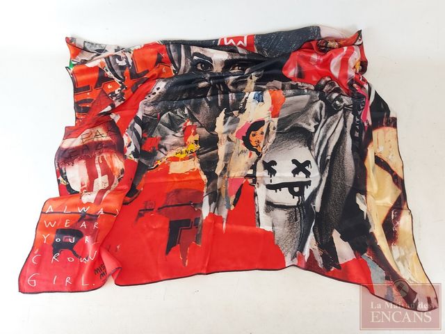 Lot # 195 - Carré de soie réalisé par Nathon Kong et représentant une œuvre de Miss Me Art - mesurant 39x39 pouces SOLD