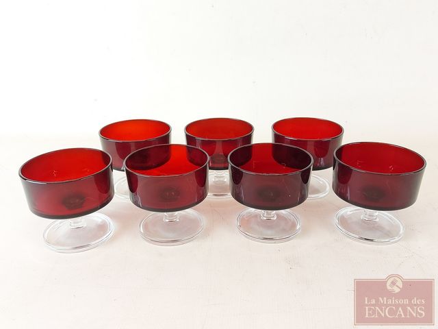 Lot # 4 - Lot de verrerie rouge rubis Luminarc Verrerie d'Arques France - le plus grand mesurant 5 pouces de hauteur SOLD