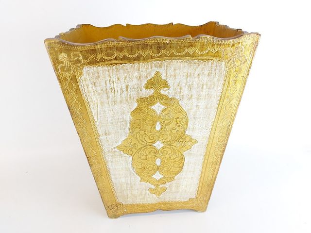 Lot # 124 - Ensemble d'objets vénitiens pour le bureau en bois doré à la feuille d'or - la corbeille mesurant 13.5 pouces de hauteur   SOLD
