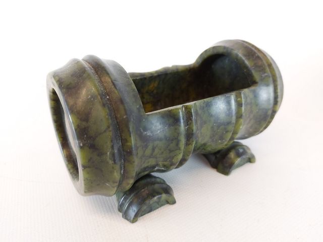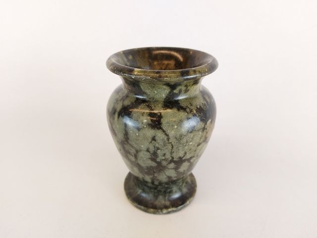 Lot # 172 - Lot comprenant un vase en pierre mesurant 6 pouces de hauteur et un pique-fleur en pierre mesurant 3.5x6 pouces SOLD