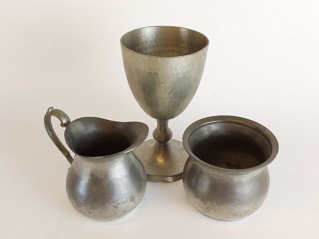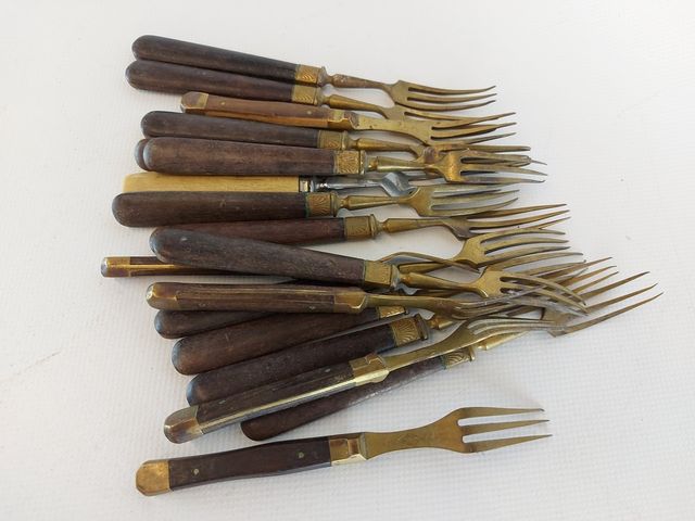 Lot # 125 - Lot varié comprenant ustensiles anciens - coupe en étain - chandelier en aluminium - et autres CANCELLED
