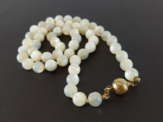 Joli et rare collier en pierre de lune mesurant 19 pouces - circa 1930