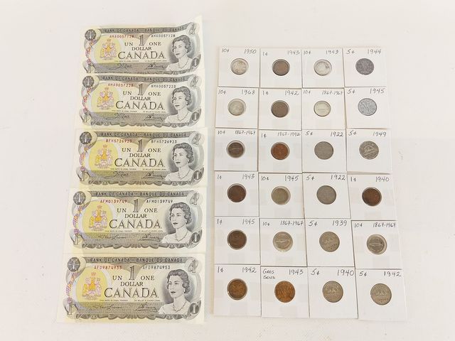 Lot # 50 - Lot numismatique canadien comprenant divers billets et pièces de monnaie SOLD