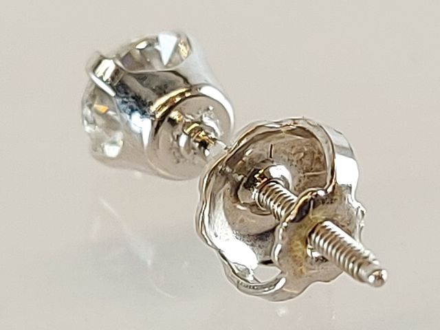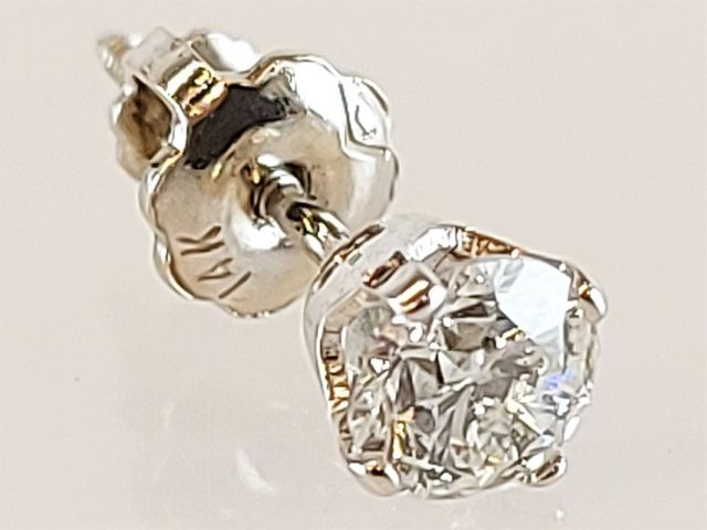 Lot # 187 - Une boucle d'oreille vissée en or blanc 14k sertie d'un diamant de 25 pts SOLD