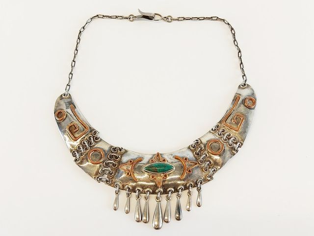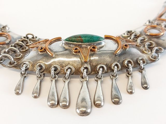 Lot # 192 - Collier signé Carmen Beckmann en argent laiton et turquoise - mesurant 18 pouces  SOLD