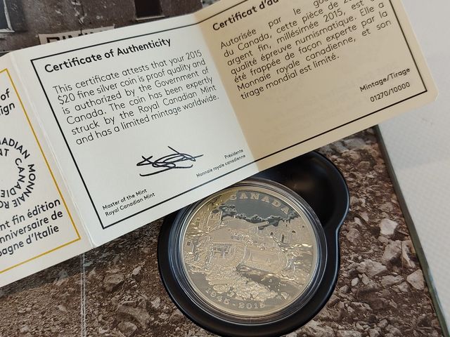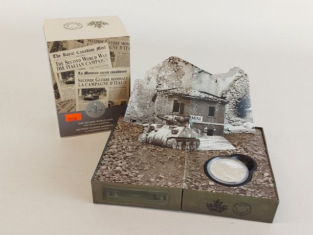 Lot # 225 - Pièce de 20 dollars canadiens en argent pur .9999 édition limitée de 2015 - 70ème années Campagne d'Italie 1945-2015 - dans son coffret d'origine - sans taxe   SOLD