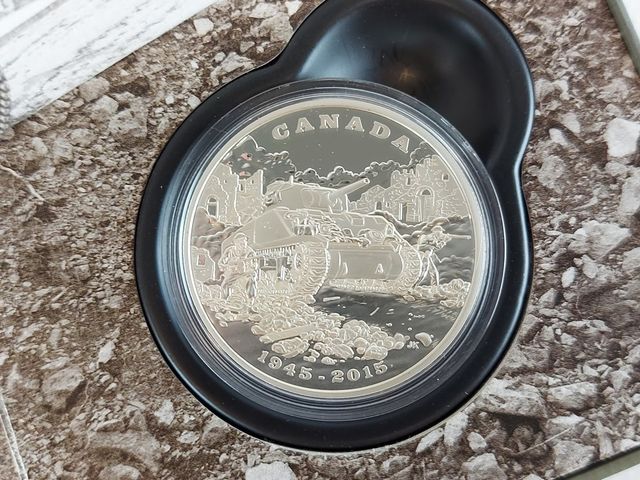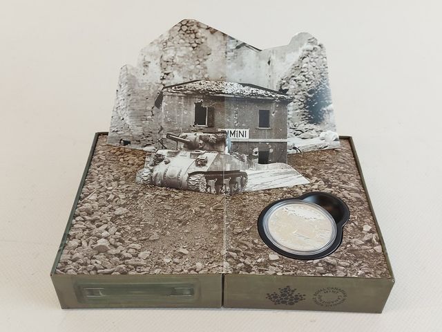 Pièce de 20 dollars canadiens en argent pur .9999 édition limitée de 2015 - 70ème années Campagne d'Italie 1945-2015 - dans son coffret d'origine - sans taxe