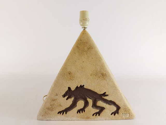 Lot # 107 - Lampe avec des motifs de peintures rupestre - Artstone Ocram - mesurant 17 pouces de hauteur SOLD