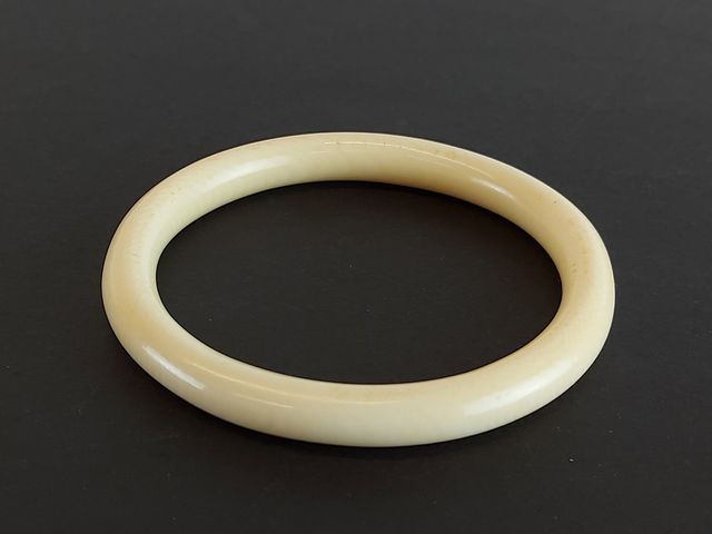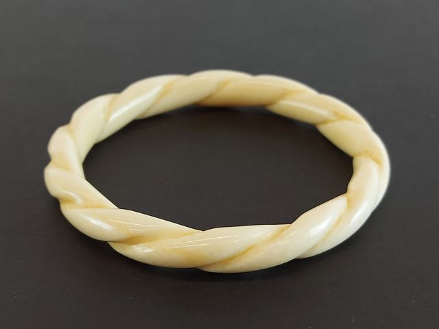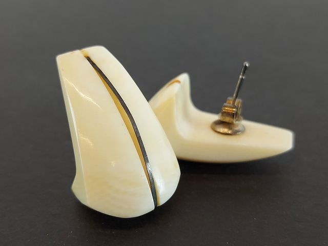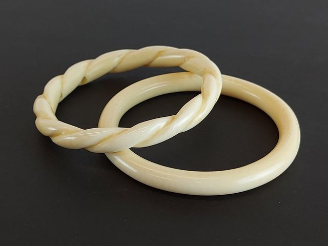 Lot de deux bracelets en ivoire ainsi qu'une paire de boucles d'oreilles en ivoire - des années 1950 - les bracelets mesurant 2 pouces de diamètre