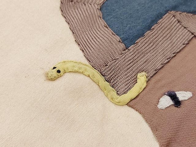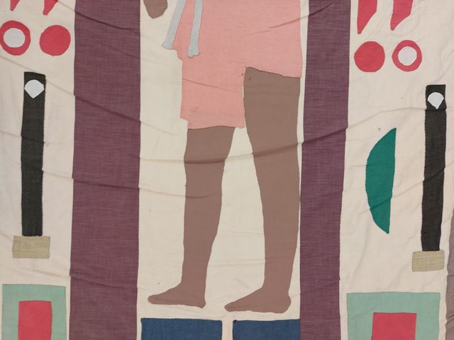 Lot # 122 - Tapisserie vintage avec motifs égyptiens et mesurant 57x36 pouces - monogramme à l'arrière   SOLD
