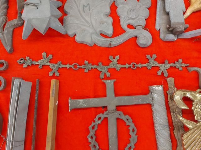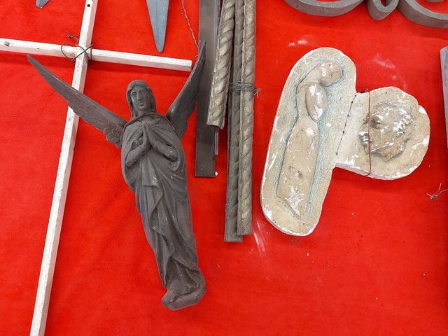 Lot # 181 - Gros lot d'appliques et d'objets religieux en métal   SOLD