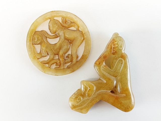 Lot # 39 - Deux sculptures érotiques sur jade mesurant 2.25 et 3 pouces SOLD