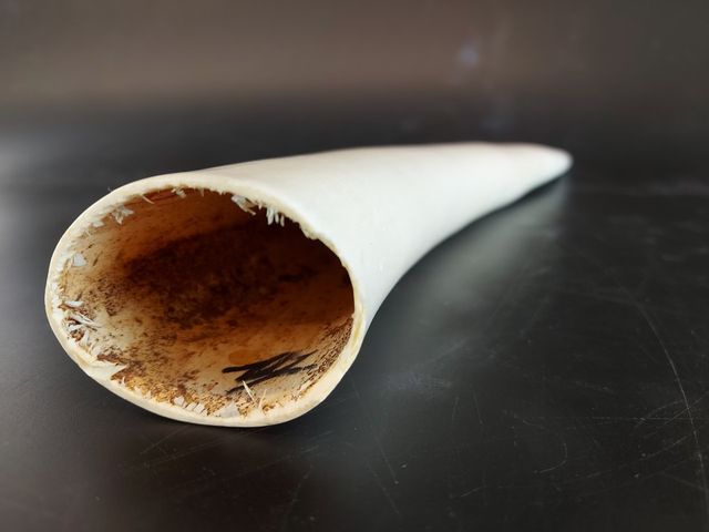 Lot # 134 - Circa 1970, Paire de défenses d'éléphant mesurant environ 19 pouces SOLD