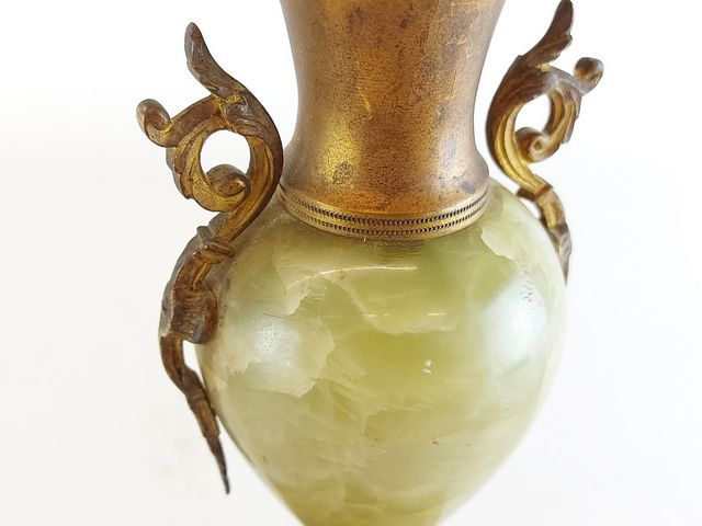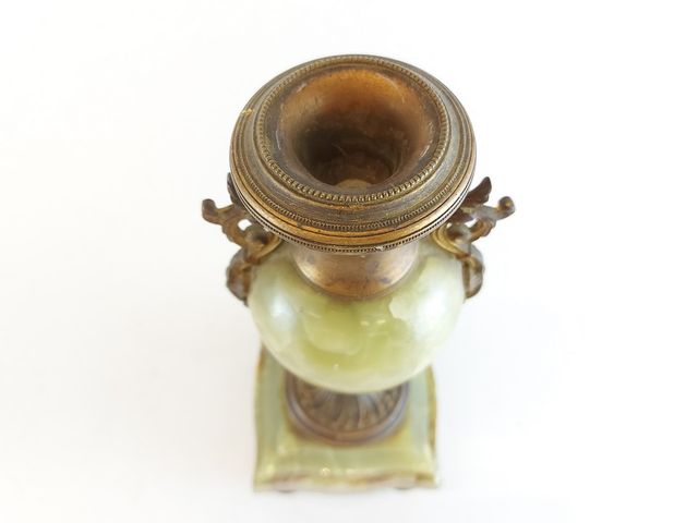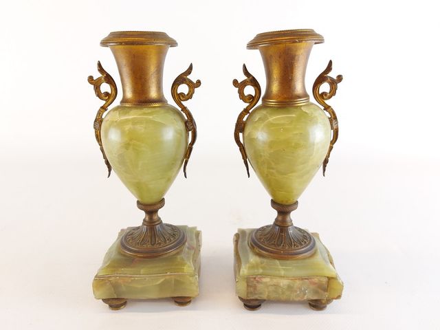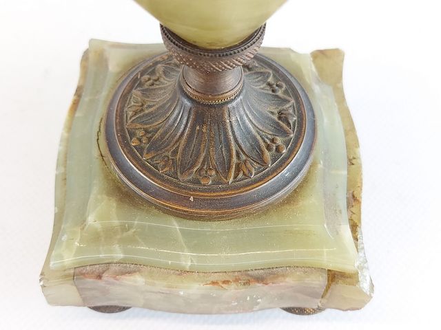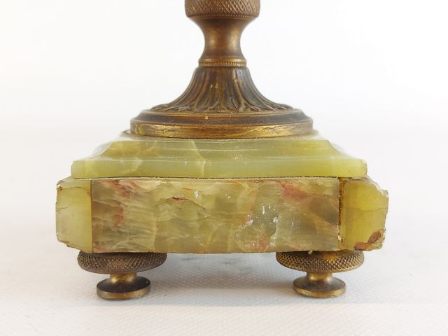 Lot # 132 - Paire de bougeoirs en bronze et onyx provenant de France époque Napoléon III 1873-1900 - mesurant 9 pouces de hauteur SOLD