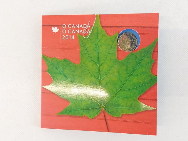 Lot # 60 - Ensemble-cadeau de pièces de monnaie 2014 de l'Ô Canada - Un ensemble cadeau d'abord! Une pièce spéciale de un dollar frappée disponible uniquement dans cet ensemble cadeau SOLD