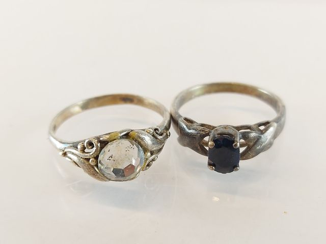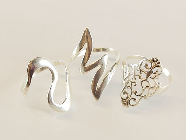 Lot # 64 - Important lot de bijoux en argent dont bagues - chaines et pendentifs - bracelets - salière et poivrière SOLD