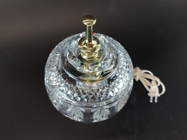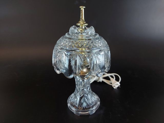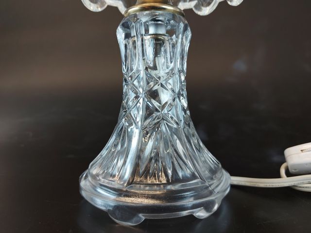 Lampe en verre mesurant 9 pouces de hauteur ainsi qu'un vide-poche et une bonbonnière en verre