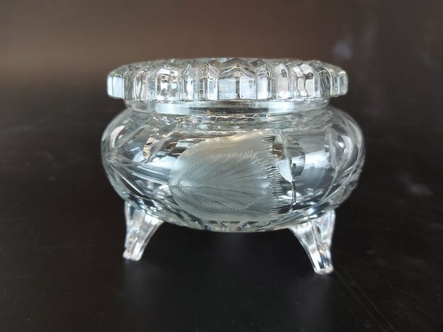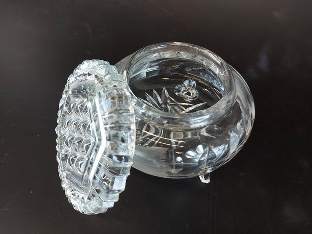 Lot # 76 - Lampe en verre mesurant 9 pouces de hauteur ainsi qu'un vide-poche et une bonbonnière en verre   SOLD