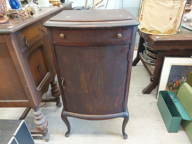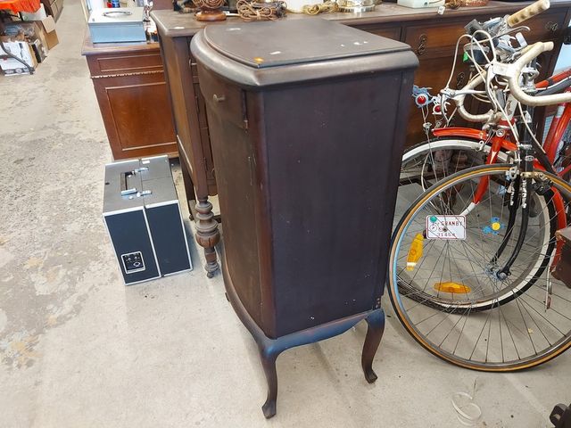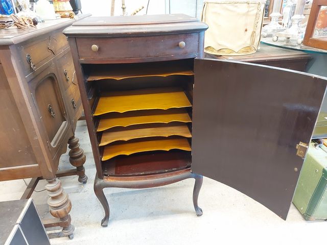 Lot # 68 - Ancien meuble à disque vinyle - porte et tiroir - mesurant 39 pouces de hauteur par 21 pouces de largeur SOLD