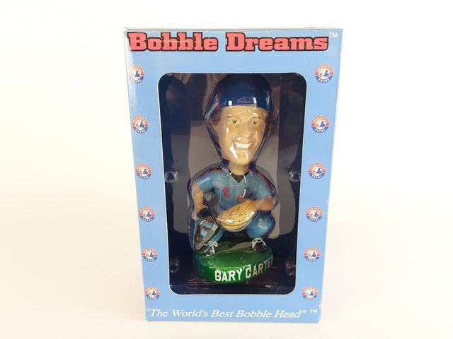 Lot # 137 - Figurine Bobble Dreams de Gary Carter ainsi qu'un fanion des Expos de Montréal mesurant 19.5 pouces SOLD