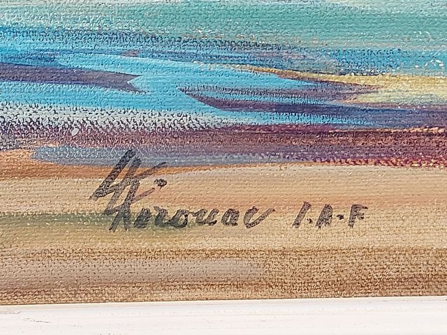 Lot # 163 - Louise LECOR KIROUAC i.a.f - Huile sur toile signée et titrée Lac St Jean à Métabetchouan - mesurant 20x24 pouces SOLD