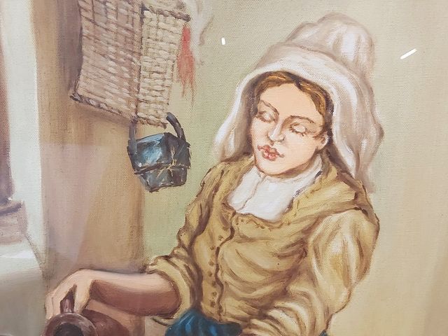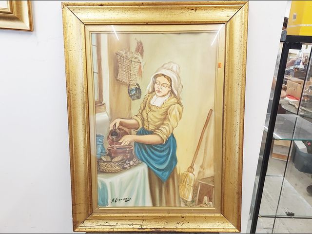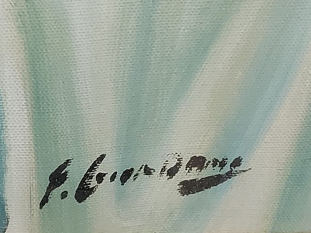 F. GIAROBUA - Gouache sur toile signée et mesurant 26x18 pouces - œuvre italienne dans son bel encadrement à la feuille d'or