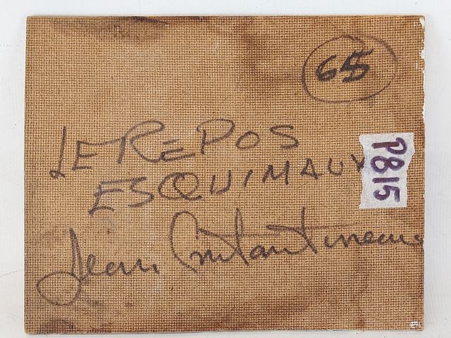 Jean CONSTANTINEAU - Huile sur panneau signée et titrée Le repos esquimaux - mesurant 10x8 pouces - écaillement sur la peinture