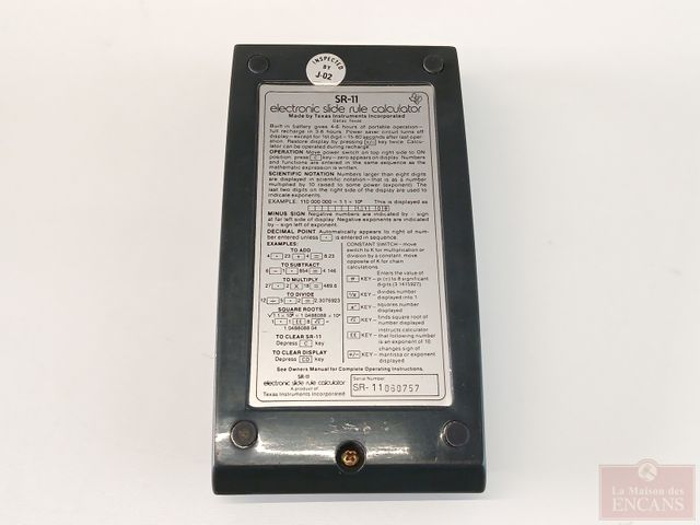 Calculatrice vintage Texas Instruments modèle SR-11, datant des années 1970, dans son étui de transport d'origine