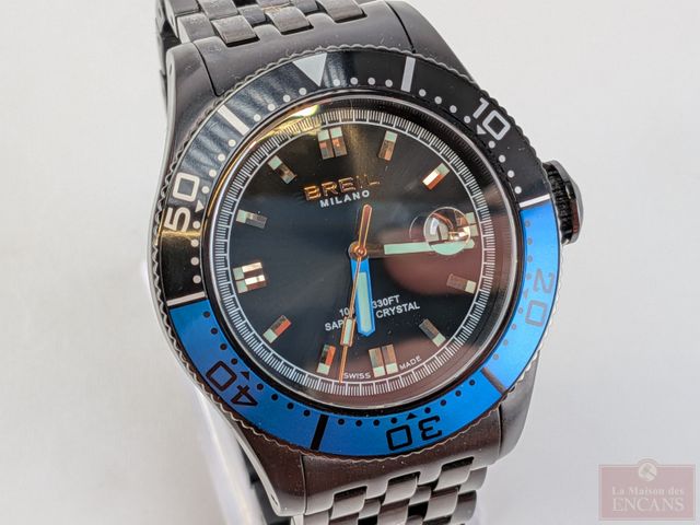 Lot # 196 - Montre de plongée Breil Milano fabrication suisse, cadran unidirectionnel, verre en saphir, mesurant 48 millimètres avec sa couronne, telle-quelle