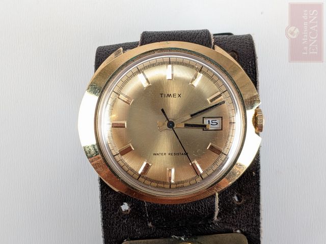 Montre vintage Timex mouvement mécanique à remontage manuel, mesurant 39.5 millimètres avec sa couronne, fonctionnelle