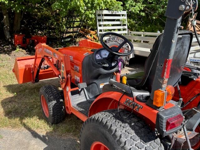Lot # 54 - Tracteur Kubota B2620 685 heures, avec toit, bucket, gratte, tondeuse, souffleuse, fourches, deux ensembles de roues et pneus et chaines, toujours bien entretenu, utilisation résidentielle sur un domaine privé - À récupérer à Sherbrooke, pour plus d'info et VISITES CE WEEK-END appelez au 514-835-4405, prix de départ de $25,000.00, la valeur marchande est de plus de $60,000.00, donc, il sera vendu sujet à approbation du vendeur. FRAIS D'ENCAN DE 10% POUR CET ARTICLE SEULEMENT.