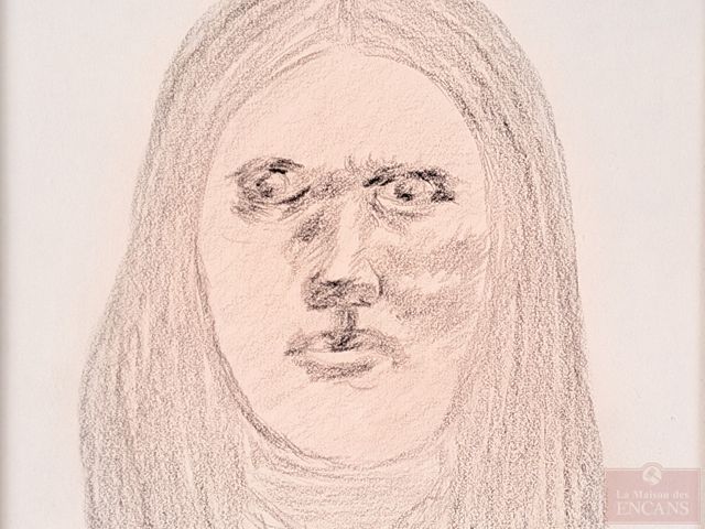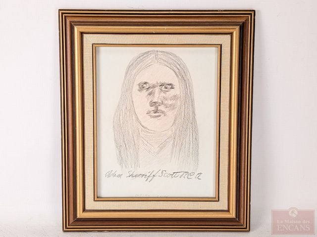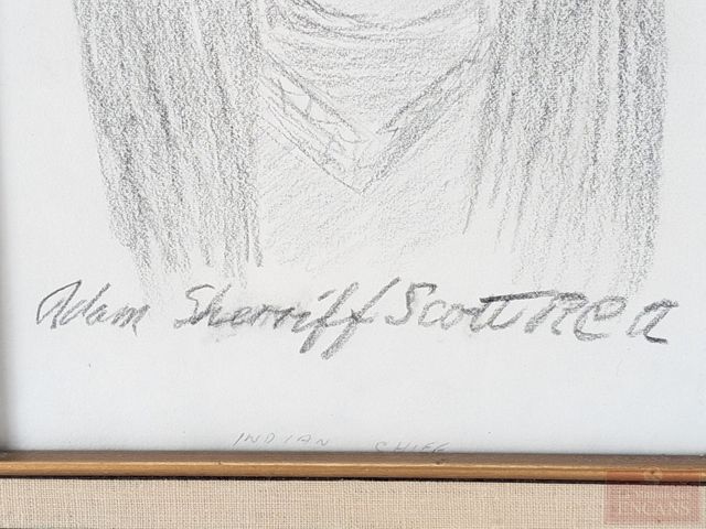 Lot # 130 - Adam SHERRIFF-SCOTT R.C.A. - Dessin au fusain signé, mesurant 8.5x6.5 pouces et titré Indian Chief