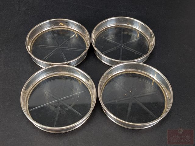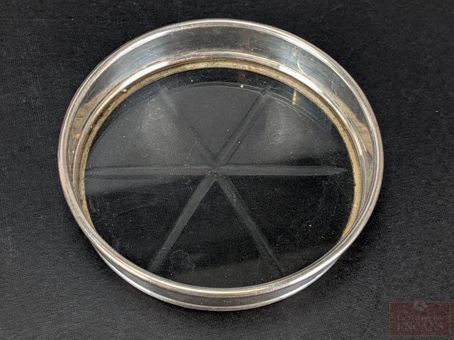 Lot # 103 - Ensemble de sous-verres Birks en argent sterling et cristal, avec son support mesurant 7.5 pouces de hauteur
