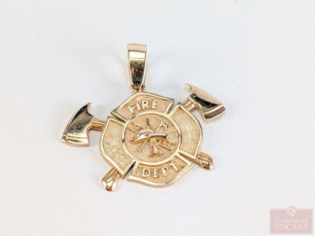 Lot # 219 - Pendentif en or 14k département des pompiers, mesurant 1.5 pouces de largeur