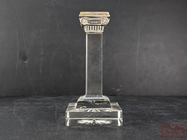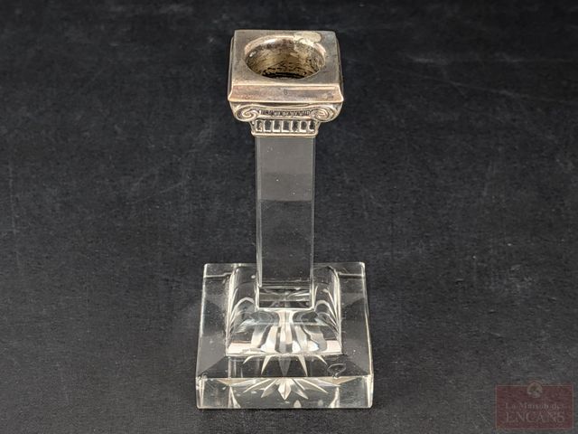 Bougeoir en cristal et argent sterling colonne corinthienne, mesurant 4.5 pouces de hauteur