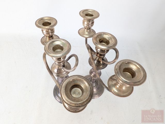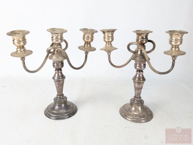 Lot # 141 - Paire de bougeoirs anglais en cuivre argenté, mesurant 10.5 pouces de hauteur