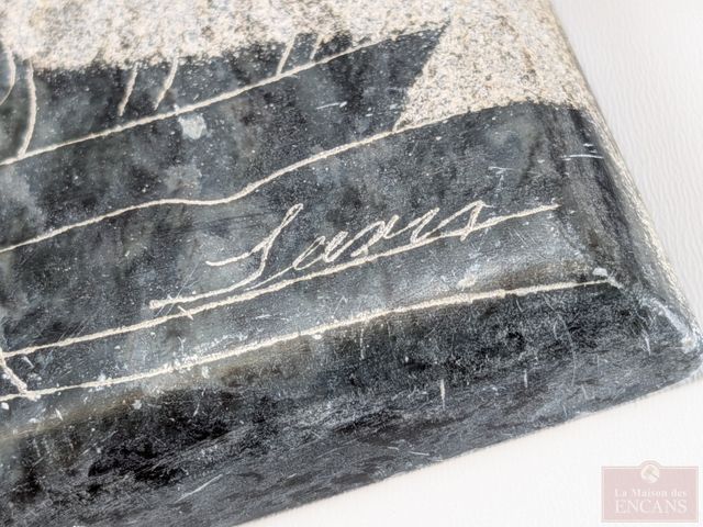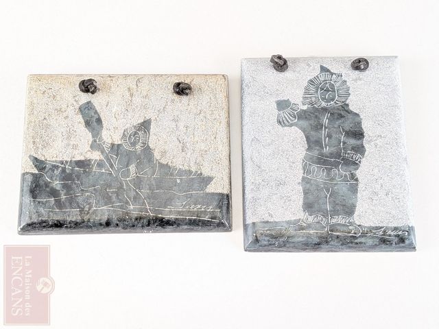 Deux sculptures inuites sur pierre à savon, signées, mesurant 5x4 pouces chacune