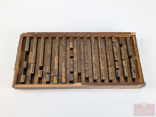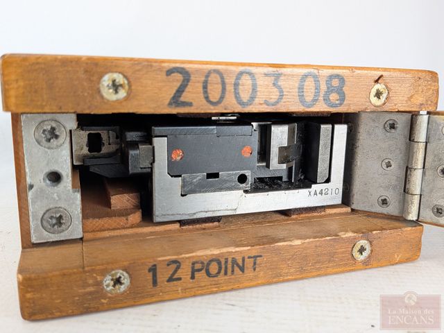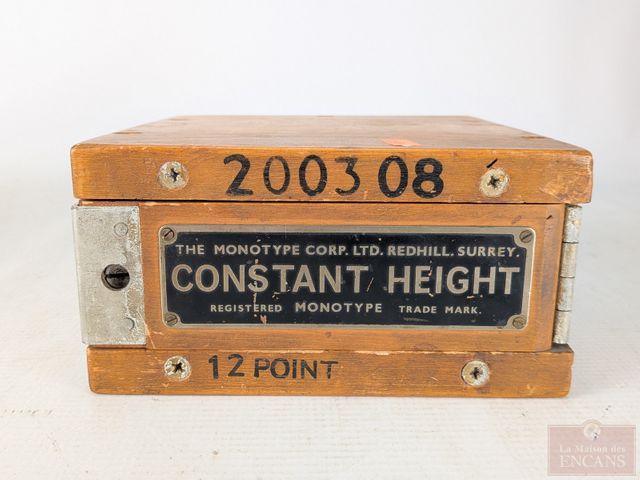 Ensemble d'anciens accessoires d'imprimerie, dont imprimante à monotypes mesurant 7 pouces